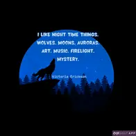 I like night time things. Wolves. Moons. Auroras. Art. Music. Firelight. Mystery...